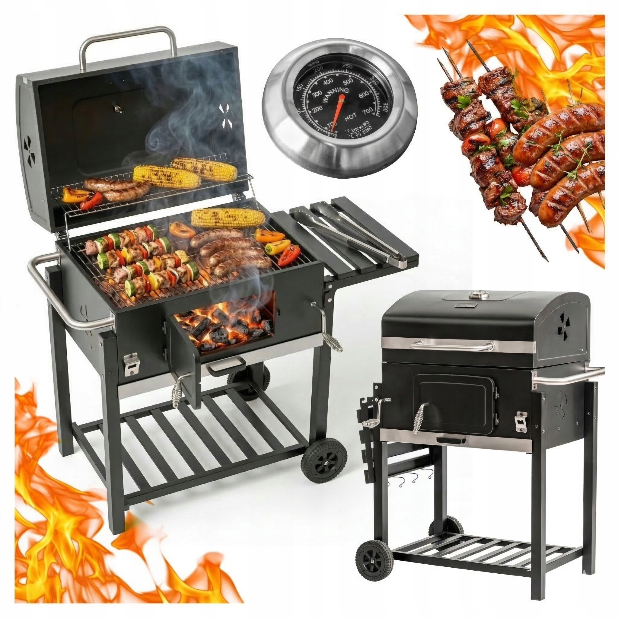 ✅ duży grill węglowy z termometrem